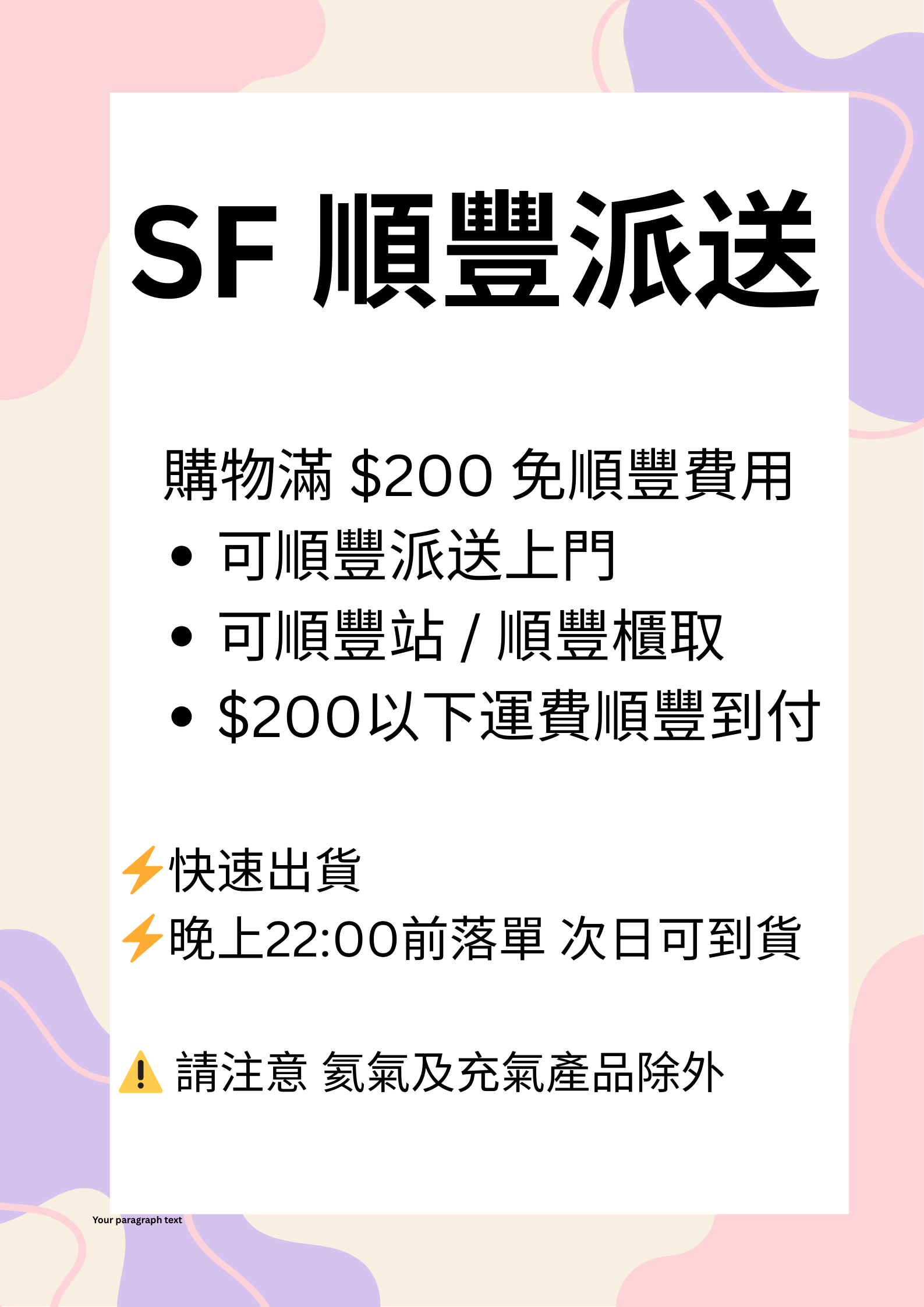 順豐配送(限氣球及配件)